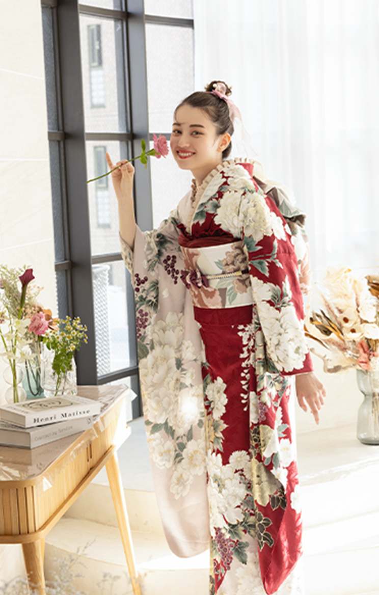 古典柄から最新トレンドまで、多彩な振袖の中からお選びいただけます。全て揃ったフルセットでサイズもぴったり。